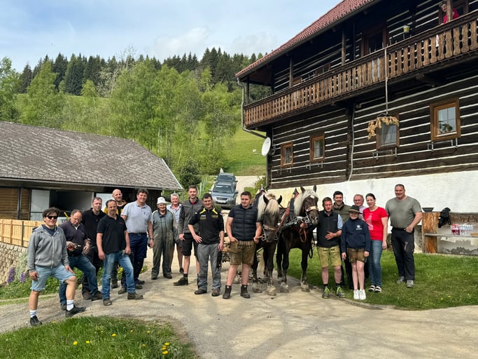 Bereits am frühen Vormittag machten sich die Männer vom SVZ auf den Weg, um gemeinsam mit dem Pferdegespann der Familie Felsberger, vlg. Lenz den Baum bei der Familie Stocklauser, Prodinger, vlg. Gatschacher zu holen.